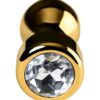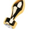 Ten złoty korek analny w kształcie pocisku to doskonałe połączenie elegancji i funkcjonalności. Jego bezpieczny design i luksusowy kryształ czynią go wyjątkowym dodatkiem do Twojej intymnej kolekcji, oferując komfort i wyrafinowanie.