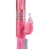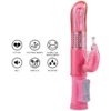 Żelowy ekskluzywny wibrator królik wyposażony w funkcję obracania trzpienia w dwóch kierunkach (4 tryby obrotu, 8 rodzajów drgań i prędkości). Wibrator charakteryzuje się stymulatorem łechtaczki w kształcie motylka oraz dodatkowymi grzbietami do stymulacji punktu G. Wibrator wyposażony w obracające metalowe kulki, które zapewniają dodatkową stymulację. Wodoodporny. Ciche silniki.