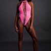 Uwolnij swoją wewnętrzną boginię dzięki tej oszałamiającej bieliźnie aktywowanej promieniami UV. Te wspaniałe body mają efektowny, łatwy do zawiązania dekolt na szyi i wysoki krój, który stwarza wrażenie węższej talii i zaokrąglonych bioder. Otwarty krok dodaje im dodatkowej zabawy. Niesamowita odzież imprezowa, która wywoła efekt wow i sprawi, że się wyróżnisz. Materiały aktywowane promieniowaniem UV dodają odrobiny tajemniczości i uroku. Łatwe w zakładaniu dzięki rozciągliwym materiałom sprawią, że rozświetlisz noc.