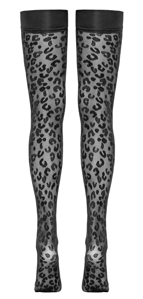 Pończochy damskie (30 den) firmy Cottelli LEGWARE w modnym stylu leo (oplatane). Dzięki silikonowemu wzmocnieniu w gumce, pończochy są stabilne i nieuciskające.