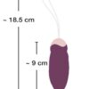 Długość całkowita 18,5 cm. Wibro jajo o długości 9 cm, średnica 3,4 cm. Waga 60 g. Silikon, PU, ABS.