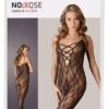 Kombinezon z miękkiej koronki z efektem miękkości z głębokim dekoltem z elastycznej taśmy w optyce koronki. Ekscytująco otwarte w kroku! Ze stopą.