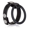 – Leather (strap), Rubber (ring), Steel with plating (snaps).
