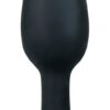 Czarny korek analny z wewnętrzną obracającą się kulą stymulacyjną, zaokrągloną końcówką i dobrze przylegającą stopką ssącą. Długość całkowita 12 cm, głębokość wsunięcia 10,5 cm. średnica 1,7 do 4,2 cm. Materiał: silikon.