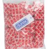 Kto nie zna sytuacji: Gorąca gra wstępna z partnerem i czekasz na napaloną noc – wtedy z przerażeniem zdajesz sobie sprawę, że w domu nie ma prezerwatyw… Te dni w końcu się skończyły, bo z tą 100-cio sakiewką wysokiej jakości prezerwatyw o stymulującym truskawkowym aromacie, zawsze jesteś gotowy na gorący, bezpieczniejszy seks. Z powłoką wilgociową i zbiornikiem.
