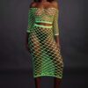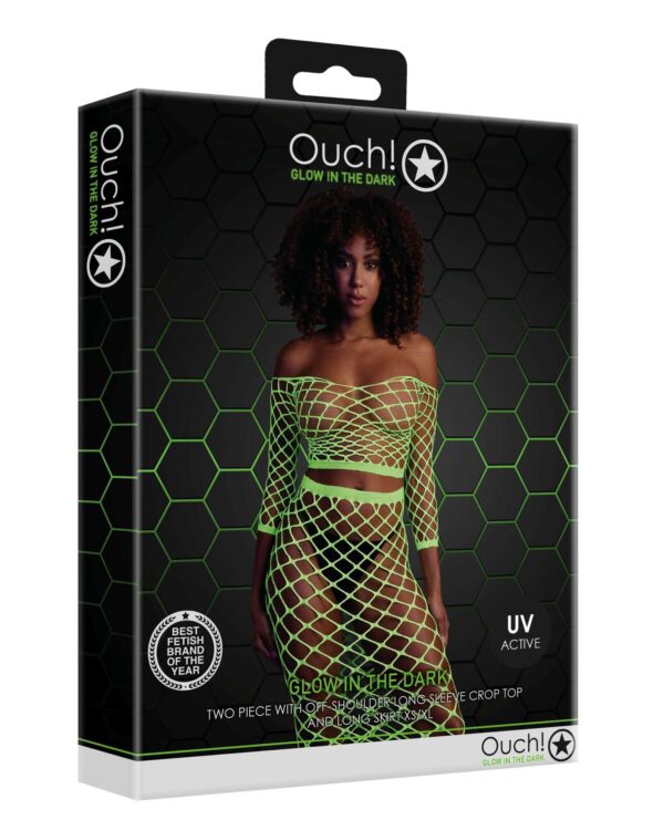 Uwolnij swoją wewnętrzną boginię dzięki tej oszałamiającej bieliźnie aktywowanej promieniami UV. Ten element składa się z krótkiego topu z długimi rękawami i długą spódnicą. Niesamowita odzież imprezowa, która wywoła efekt wow i sprawi, że się wyróżnisz. Aktywowane promieniowaniem UV materiały dodają odrobiny tajemniczości i uroku. Łatwe w zakładaniu dzięki rozciągliwym materiałom rozświetlą noc.