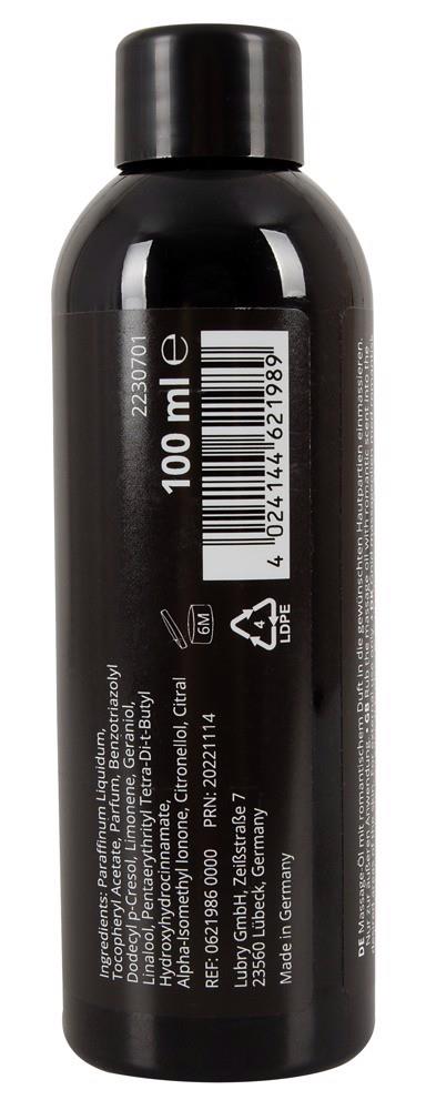 High-quality, nourishing, erotic massage oil with a sensual, romantic scent. With jojoba oil. Water-soluble. Long-lasting lubrication. Made in Germany.