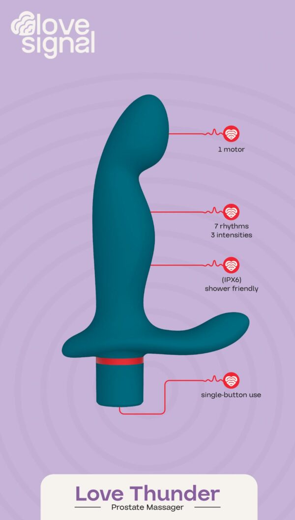 Love Thunder z kolekcji Love Signal marki Dreamtoys to masażer prostaty zapewniający precyzyjną, ukierunkowaną stymulację oraz głębokie, intensywne wibracje.