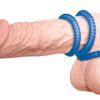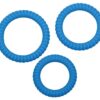 3 pierścienie penisa o strukturze rowkowej o różnych średnicach (2,6, 3,0 i 3,5 cm). Idealny również do sznurowania jąder. Może być używany pojedynczo lub w kombinacji. Materiał: silikon.