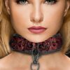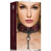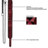 Jeśli potrzebujesz całkowitej kontroli, ta wytrzymała i wygodna obroża na smyczy gwarantuje to wszystko! Posiadająca diamentowy wzór obroża wykonana jest z modnego neoprenu i skóry ekologicznej, a pięć dziu- rek pozwoli na jak najlepsze dopasowanie. Jej długość wynosi 52,5 cm, a szerokość 5 cm. Wytrzymały czarny łańcuch przyłączany jest za pomocą karabińczyka do pierścienia na obroży. Posiada też wygodny uchwyt.