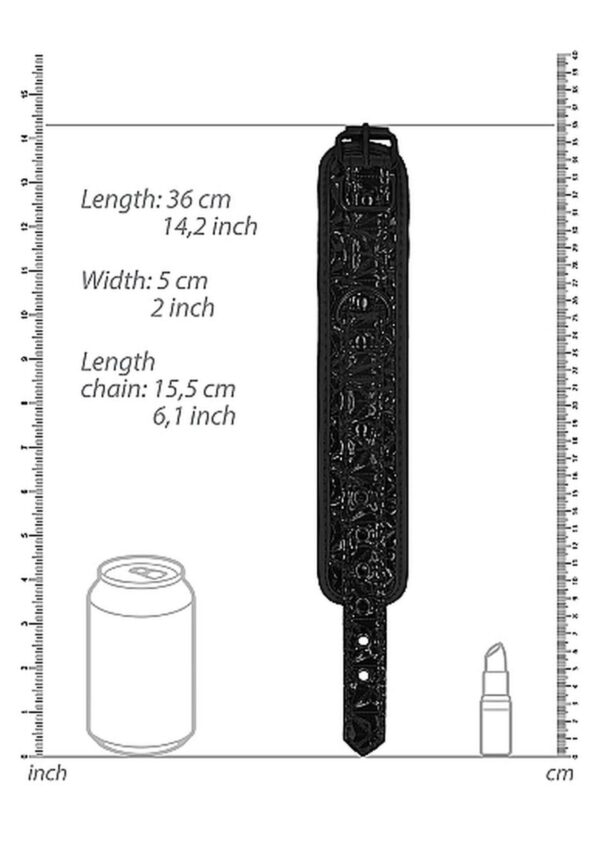 Wzbogać swoją przygodę z BDSM za pomocą tych eleganckich i super wytrzymałych kajdanek! Dzięki 6 regulowanym otworom gwarantują bezpieczne i odpowiednie dopasowanie do ciała. Dopuszczalny zakres: od 21 do 31 cm. Wytrzymały, metalowy łańcuch w kolorze czarnym mierzy 15,5 cm długości i zwieńczony jest karabińczykiem, który ułatwia zapinanie i rozpinanie. Dzięki modnemu wzorze w diamenty, te kajdanki z neoprenu i skóry ekologicznej będą świetnie wyglądać w każdej kolekcji BDSM.