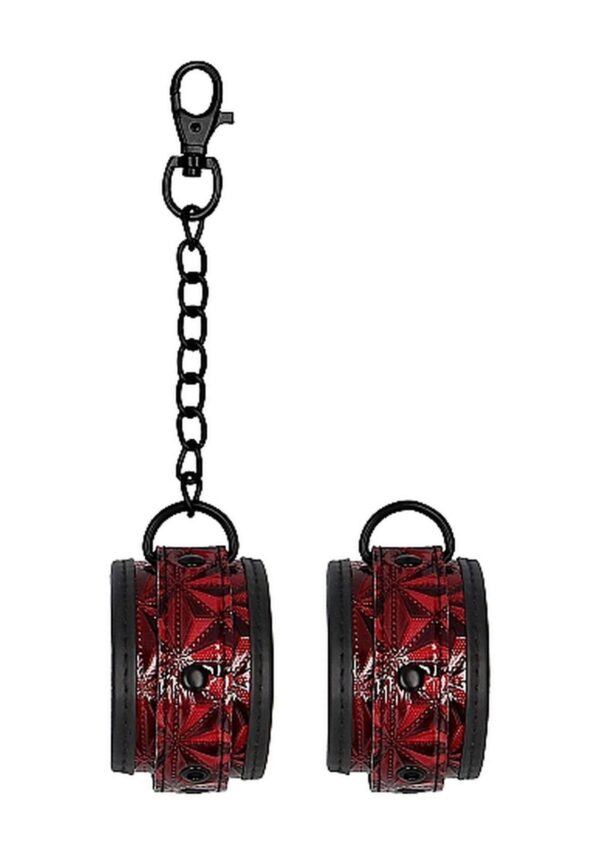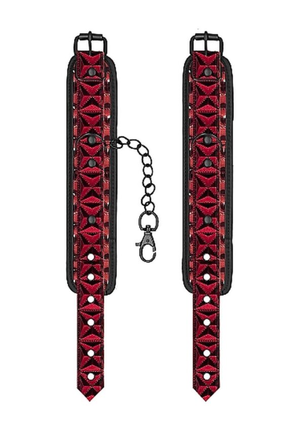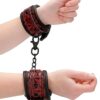 Wzbogać swoją przygodę z BDSM za pomocą tych eleganckich i super wytrzymałych kajdanek! Dzięki 6 regulowanym otworom gwarantują bezpieczne i odpowiednie dopasowanie do ciała. Dopuszczalny zakres: od 21 do 31 cm. Wytrzymały, metalowy łańcuch w kolorze czarnym mierzy 15,5 cm długości i zwieńczony jest karabińczykiem, który ułatwia zapinanie i rozpinanie. Dzięki modnemu wzorze w diamenty, te kajdanki z neoprenu i skóry ekologicznej będą świetnie wyglądać w każdej kolekcji BDSM.