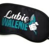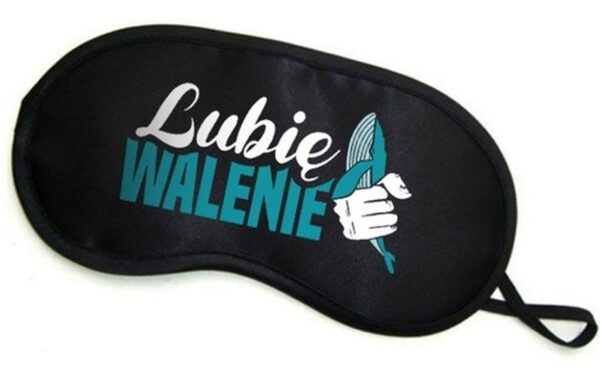 Miła w dotyku, delikatna opaska na oczy z zabawnym napisem.