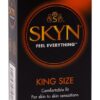 Prezerwatywy dla ultra wrażliwego uczucia. Ciepło ciała przepływa bardziej intensywnie dzięki temu nowemu rodzajowi materiału. Sensoprene (Poylisoprene) nie zawiera lateksu i jest bezwonny – idealny dla osób uczulonych na lateks i wrażliwych na lateks. „Manix SKYN King Size” są przezroczyste, powlekane na mokro, mają długość 190 mm (zwykle 180 mm), szerokość nominalną 56 mm (zwykle 52 mm) i grubość materiału 0,065 mm. Produkt nie zawiera żadnych składników pochodzenia zwierzęcego i może być polecany wegetarianom i weganom. 10 sztuk.