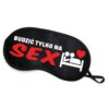 Miła w dotyku, delikatna opaska na oczy z zabawnym napisem.