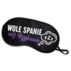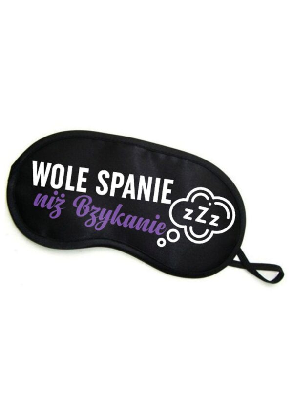 Miła w dotyku, delikatna opaska na oczy z zabawnym napisem.