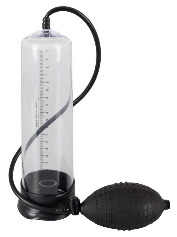 Penis, kremowany smarem, jest wkładany do przezroczystego cylindra i mocno zamknięty u nasady za pomocą miękkiego mankietu silikonowego. Za pomocą poręcznej pompy ze zintegrowanym zaworem spustowym wytwarza się próżnia, a przezroczysty cylinder ze skalą pomiarową pokazuje odpowiednią wielkość penisa.
