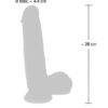 Długość całkowita 20 cm, głębokość wprowadzenia 14,5 cm, średnica 3,3-4,4 cm. Silikon (płynny silikon).