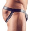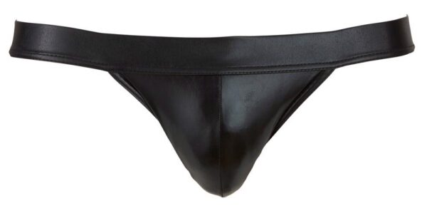 Elastyczny jock w kolorze błyszczącej czerni. Elastyczna talia i paski w pasie pokryte gumą.