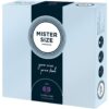 Przezroczyste, ultracienkie prezerwatywy Mister Size (69 mm) wykonane z lateksu kauczuku naturalnego z warstwą lubrykantu i zbiorniczkiem. Wegańskie.