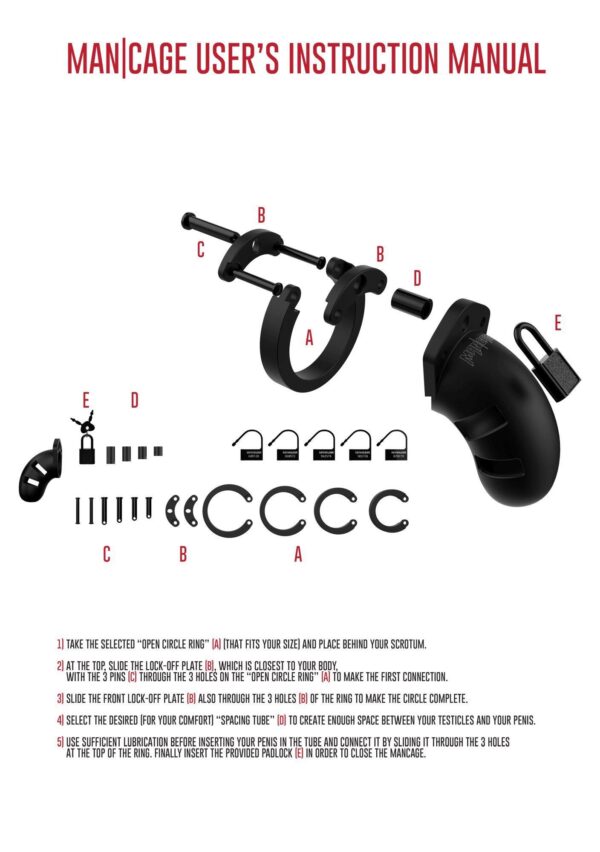 Ten Mancage jest wykonany z silikonu klasy medycznej i jest dostępny w dwóch rozmiarach. Dodano kilka regulowanych pierścieni, które zabezpieczają penisa i kulki za pomocą paska. Ten Mancage oferuje dodatkową przyjemność z dzielonego ballstrap, który jest umieszczony ciasno między kulkami i jest połączony z pierścieniem i klatką. Który również wykonany jest z wygodnego silikonu. Dzięki silikonowi klasy medycznej jest bezpieczny do noszenia przez cały dzień i gładko układa się pod ubraniem. Dzięki temu można go nosić potajemnie, ale z łatwością, wszędzie. Posiada funkcjonalne otwory do wentylacji i toalety i jest łatwy do czyszczenia. Ten Mancage jest dostarczany z kilkoma plastikowymi zapięciami, do użycia, jeśli wymagana jest dodatkowa dyskrecja (jak kontrole bezpieczeństwa). Te blokady mogą zostać poluzowane, gdy nadejdzie czas na ostateczne uwolnienie. Solidny metalowy zamek jest również dołączony. Szukasz czegoś naprawdę ekscytującego i niegrzecznego? Czy chcesz być dokładnie kontrolowany przez swojego partnera? Ten Mancage daje możliwość przejęcia całej władzy lub całkowitego oddania jej partnerowi. Perwersyjne? To jest pewne. Graj bezpiecznie, idź za komfortem i pozwól na dyskomfort lub ból tylko wtedy, gdy zostaniesz o to poproszony, a nikt nie zostanie skrzywdzony na dłuższą metę. Zdejmij klatkę podczas snu.