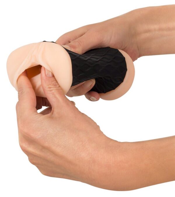 Ten pobudzający uwodziciel obiecuje Ci podwójną przyjemność, ponieważ ten masturbator w kolorze skóry ukrywa dwa otwory przyjemności jednocześnie! Zdecyduj sam, co chcesz – zapraszające otwarcie pochwy z nubbingowanym kanałem przyjemności za nim lub pulchne otwarcie odbytu z rowkowanym kanałem przyjemności. Średnica kanału przyjemności zawsze doskonale się dopasowuje dzięki elastycznemu, przypominającemu skórę materiałowi. I bez względu na to, co wybierzesz, zawsze będziesz miał pewny chwyt na masturbatorze dzięki czarnemu, strukturalnemu mankietowi.