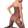Siateczkowy kombinezon wykonany z czarnej elastycznej siateczki. Tutaj nic nie jest pozostawione wyobraźni. W kroku i na boki prowokacyjnie otwarte. Wąskie paski. Ze stopą. Produkowane bez szwu. 100% poliamid.