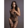 Zmysłowy bodystocking stworzony z połączenia siateczki i wzoru fence net, który doskonale podkreśla ciało.