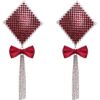 Biżuteria na sutki Bow od Cottelli ACCESSOIRES ma misterny, elegancki design. Diamentowe naklejki wykonane z błyszczących czerwonych kamieni pięknie podkreślają piersi. Dodatkową ozdobą są delikatne, zwisające łańcuszki oraz czerwone, satynowe kokardki. Naklejki można łatwo przykleić i używać wielokrotnie – wystarczy po zdjęciu nałożyć z powrotem folię ochronną przed przechowywaniem.