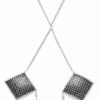 Srebrne naklejki na sutki Nipple Stickers Square od Cottelli ACCESSOIRES mają błyszczący, diamentowy kształt ozdobiony czarnymi kamieniami. Połączone są łańcuszkiem na szyję oraz 2 zwisającymi łańcuszkami – jeden z nich jest pokryty błyszczącymi cyrkoniami. Naklejki można łatwo przykleić, a dzięki ponownemu użyciu folii ochronnej, także wielokrotnie wykorzystać.