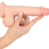 Flexible Dildo with movable Skin S from Nature Skin in an extremely realistic penis shape with a movable (skin) surface with veins and a bulging glans. There is a suction cup underneath the large testicles that will stick to any smooth surface securely – making hands-free fun possible. The dildo is also compatible with strap-ons and harnesses.