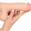 The dildo is completely made out of Nature Skin material (TPE). This material means that the dildo is excitingly hard and stiff but it doesn’t lose any of its flexibility either. Its velvety soft surface is movable and moves up and down during penetration for an extremely realistic sensation. Not only does the Nature Skin material look like real skin, but it also has the same silky soft feeling to it.