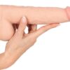 Flexible Dildo with movable Skin L from Nature Skin in an extremely realistic penis shape with a movable (skin) surface with veins and a bulging glans. There is a suction cup underneath the large testicles that will stick to any smooth surface securely – making hands-free fun possible. The dildo is also compatible with strap-ons and harnesses.
