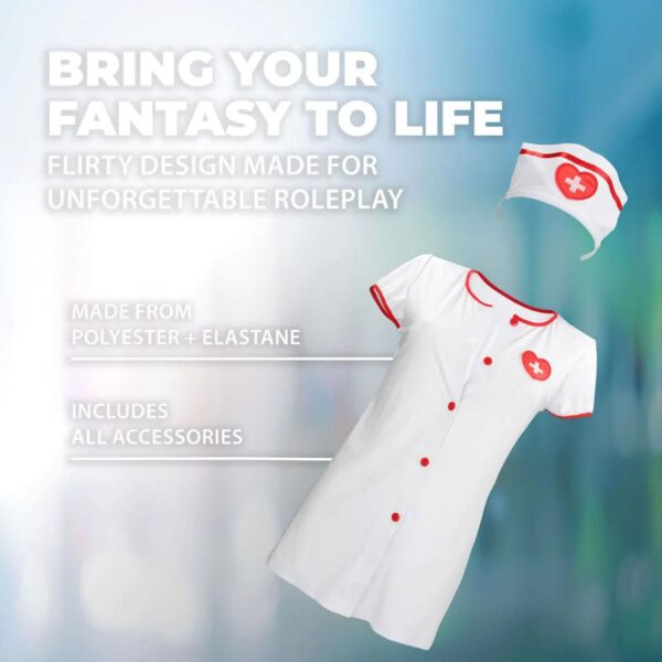 Uwolnij swoją fantazję i przenieś się poza granice rzeczywistości! Ten kuszący kostium pielęgniarki zawiera obcisłą mini sukienkę oraz pasujący czepek — gwarantowany sposób, by podnieść tętno i przepisać solidną dawkę zmysłowej zabawy. Idealny na erotyczne przebieranki, romantyczny wieczór lub imprezę tematyczną, gdzie chcesz połączyć niewinność i prowokację w jednym stroju. Wykonany z miękkiego i elastycznego materiału, zapewnia idealne dopasowanie i komfort noszenia. Pielęgnacja: Pierw tylko ręcznie w zimnej wodzie z delikatnym detergentem. Nie używaj wybielaczy ani agresywnych środków czyszczących. Po praniu delikatnie odciśnij wodę, nie wykręcaj. Suszyć na płasko, z dala od słońca i źródeł ciepła. Jeśli konieczne, prasować na niskiej temperaturze przez materiał ochronny. Przechowuj w suchym, chłodnym miejscu. Rozmiar: S/M Kolor: Biały