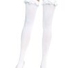 Opaque Thigh Highs With Satin Ruffle Trim And Bow