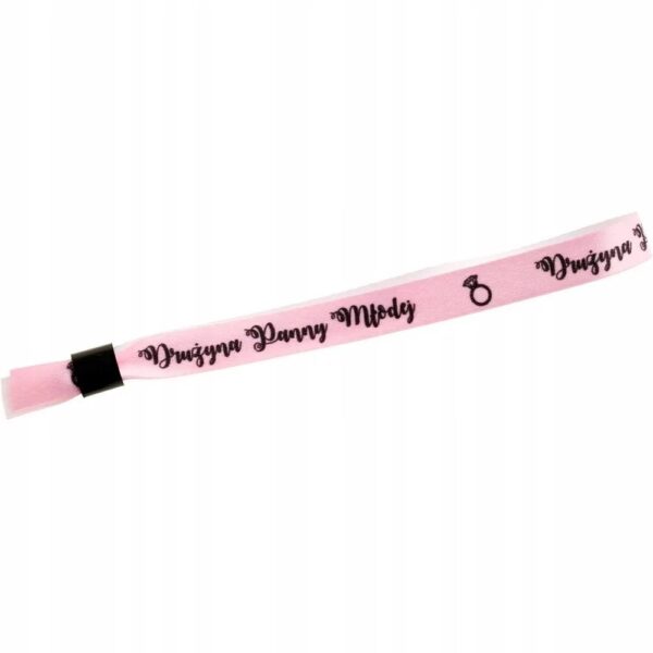 Opaska na rękę z napisem Drużyna Panny Młodej w różowym kolorze. Niezbędny gadżet na każdy wieczór panieński.
