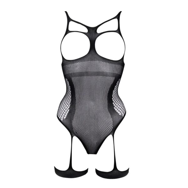 This open-cup fishnet teddy with a strappy neckline and open crotch is made for the bold.