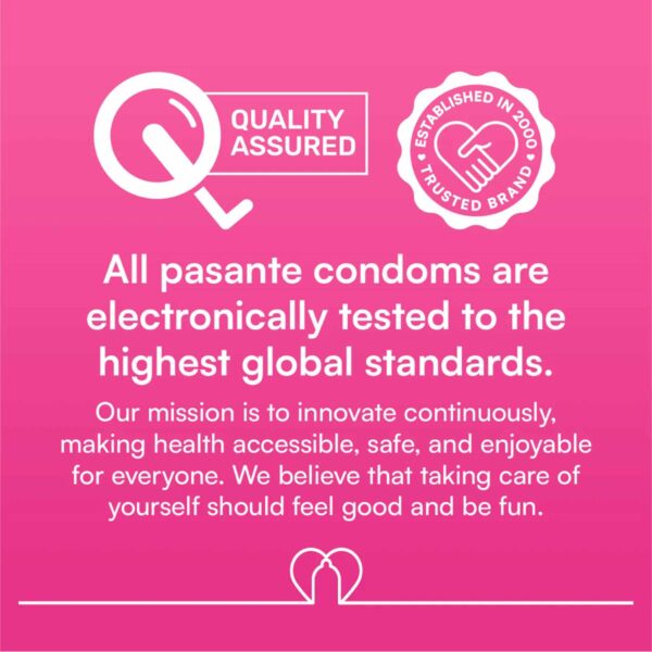 Pasante Regular to prezerwatywy stworzone z myślą o prostocie i naturalnym komforcie. Gładkie, przezroczyste, z lekko zwężanym kształtem i zbiorniczkiem na końcu – zapewniają naturalne dopasowanie i wysoki poziom bezpieczeństwa.