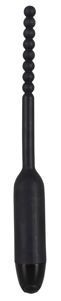 Czarny wibrator dilator z 7 trybami wibracji za naciśnięciem przycisku. Długość całkowita ok. 19 cm, długość pręta 10,5 cm, średnica ok. 8 mm. Materiał: silikon, ABS. W tym baterie z ogniwami guzikowymi.