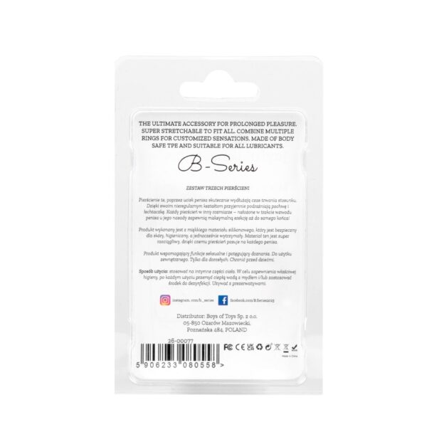 Pierścienie erekcyjne wykonane z bardzo rozciągliwego silikonu. Pasują na każdego penisa. Pierścienie te, poprzez ucisk penisa skutecznie wydłuża czas trwania stosunku.Pierścienie nałożone w trakcie wzwodu penisa u jego nasady zapewnią maksymalną erekcję aż do samego końca! Produkt wykonany jest z miękkiego materiału silikonowego, który jest bezpieczny dla skóry higieniczny, a jednocześnie wytrzymały. Materiał ten jest super rozciągliwy, dzięki czemu pasuje na każdego penisa.