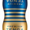 Masturbator Dual Sensation Cup od Tengi w dyskretnym wyglądzie teraz w wersji premium z jeszcze bardziej rozbudowaną strukturą wewnętrzną, wyższej jakości materiałem silikonowym, bardziej elastycznym kubkiem do ściskania i ulepszonym (łatwo zmywalnym) lubrykantem dla jeszcze większej gładkości. Jednorazowy masturbator może być używany obustronnie (jedna strona stymuluje delikatnie, druga intensywnie) i jest gotowy do natychmiastowego użycia. Po miękkim wejściu, penis jest zaopatrzony przez pierścień smarujący w dużą ilość smaru premium, więc dodatkowy smar nie jest konieczny. Dwie zróżnicowane struktury wewnętrzne o różnych średnicach masują penisa zmysłowo lub chwytnie. Na końcu każdego masturbatora znajduje się innowacyjny otwór próżniowy, który zapewnia dodatkowe doznania podczas ssania, jak najlepszy blowjob. W tym celu należy usunąć naklejkę z otworu podciśnieniowego i zamknąć lub otworzyć go palcem (według uznania).