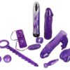 Zawartość: 1 sztyft analny w formie spirali (długość ok. 23 cm, średnica˜ 1,6 cm), 1 wibrator w kolorze srebrnym (długość ok. 19 cm, średnica˜ 3,3 cm), 1 pokrywa penisa do wibratora ze stymulatorem łechtaczki, 1 dildo, 1 masturbator w formie pochwy, 1 jajko wibra na kablu z pilotem, 1 kołek analny z pętlą na palec, 1 para kulek miłosnych, 1 pierścień penisa. Materiał: TPE, ABS. Baterie w zestawie.