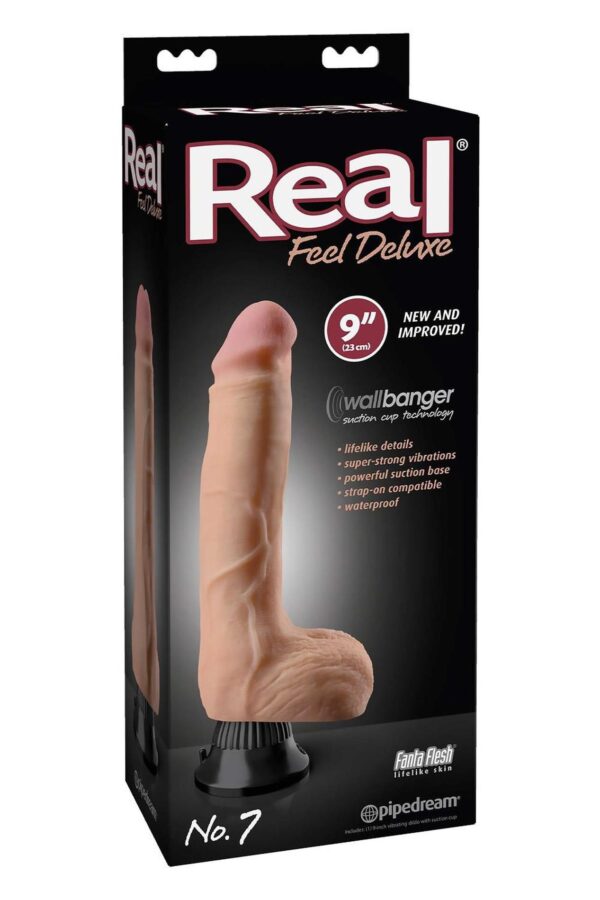 NOWY I UDOSKONALONY! Odkryj niezrównaną przyjemność z Real Feel® Deluxe No.7 – 9 in. Dildo, teraz jeszcze lepszym! Zaprojektowany, by dostarczyć maksymalnie realistycznych doznań, ten wibrator ma wyrazistą główkę, wypukłe żyłki i swobodnie zwisające jądra, wszystko wykonane z niezwykłą precyzją. Wykonany z materiału Fanta Flesh®, który wiernie odwzorowuje miękkość i fakturę prawdziwej skóry, gwarantuje niezrównane wrażenia.