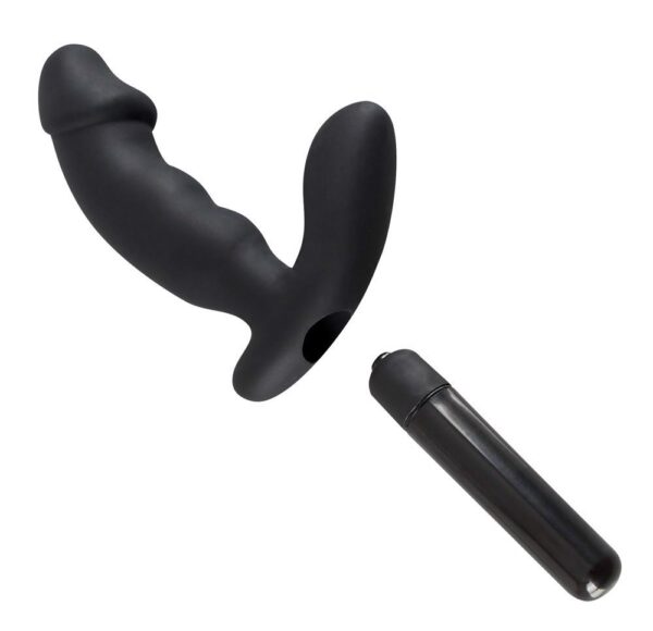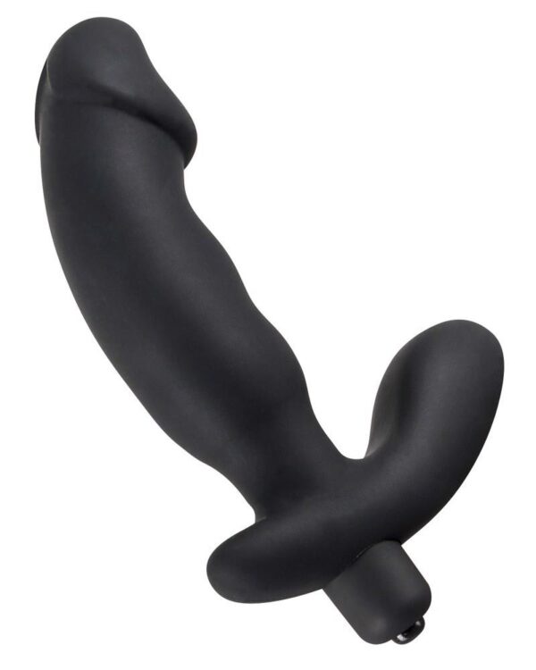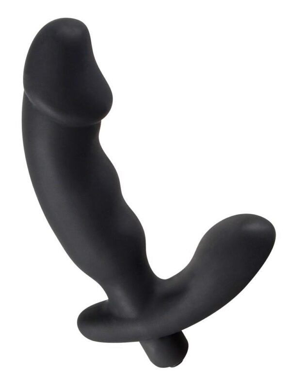 Ten czarny wibrator z lekko pofalowanym wałem i wybrzuszającym się żołędziami jako punkt końcowy z dodatkowym stymulatorem krocza.