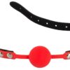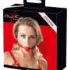 Dzięki poczwórnie regulowanemu paskowi, silikonowy knebel może być umieszczony dokładnie tam, gdzie chcesz i bez żadnych argumentów! Czerwony knebel na czarnym, imitującym skórę pasku z klamrą. Gag-średnica ok. 4 cm, obwód 42 do 58 cm. Materiał: poliuretan, silikon.