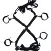 Przypnij mocno swojego kochanka do łóżka i spełnij jego najskrytsze pragnienia dzięki Scandal Over the Bed Cross. Mocne paski są w pełni regulowane, aby pasowały do ??każdego rozmiaru łóżka. Uniwersalne klamry i pierścienie mają obrotową konstrukcję, dzięki której zmiana pozycji w upale chwili zajmuje kilka sekund. Jako dominujący pokochasz widok swojego partnera rozłożonego na łóżku, całkowicie unieruchomionego przez te niezniszczalne ograniczenia. Twoja uległość będzie mogła patrzeć i jęczeć z pożądania, kiedy całujesz, drażnisz i pieścisz aż do ekstazy. Jako uległy pokochasz pośpiech polegający na zaufaniu partnerowi do robienia dokładnie tego, co mu się podoba i wszystkiego, co doprowadza Cię do szaleństwa. Miękkie, pluszowe mankiety nadgarstka i kostki zapewnią ci wygodne wiązanie, bez względu na to, jak mocno skręcisz i pociągniesz ograniczenia. Krzyżowy krój sprawia, że ??jesteś całkowicie narażony na podziwiające spojrzenie i pożądliwe dłonie swojego kochanka, co zapewnia najwyższą przyjemność. Twoja dominująca osoba może zacisnąć paski, aby rozłożyć nogi tak daleko od siebie, jak odważysz się odsłonić wszystko i dać im dostęp do wszystkich najbardziej wrażliwych miejsc. Niezwykle seksowna wyprawa do świata odgrywania ról i obiecująca wyjątkowy i niegrzeczny wieczór gry zarówno dla dominującej, jak i uległej strony.