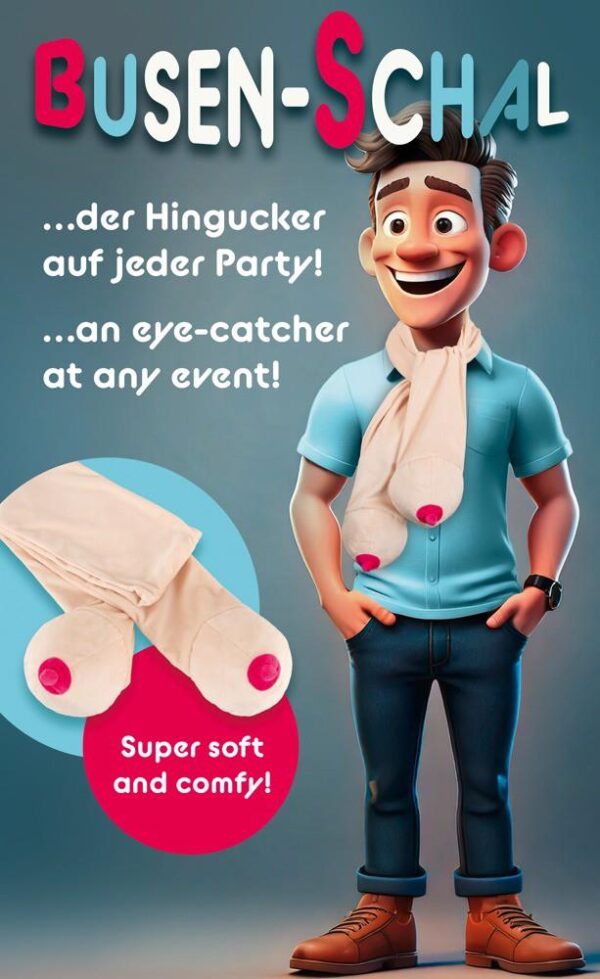 • Zabawny szalik z piersiami – po jednej pluszowej piersi z różowym sutkiem na każdym końcu