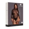 Uwodź w naszym połyskującym body z odkrytymi plecami i rozpalaj zmysły dzięki połączeniu czerni i złota z pasem do pończoch z eko skóry (PU).