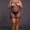 Zachwycająca krótka sukienka z cienkimi ramiączkami i wzorem z siateczki. Miękkie, elastyczne paski na dekolcie i ramionach. Miękki i superelastyczny materiał idealnie dopasowuje się do rozmiarów od XL do 4XL, zapewniając wygodę i stylowy wygląd.