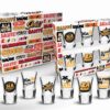 W komplecie znajdziesz 6 kieliszków o pojemności 35 ml, każdy z unikalnym, zabawnym nadrukiem: